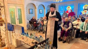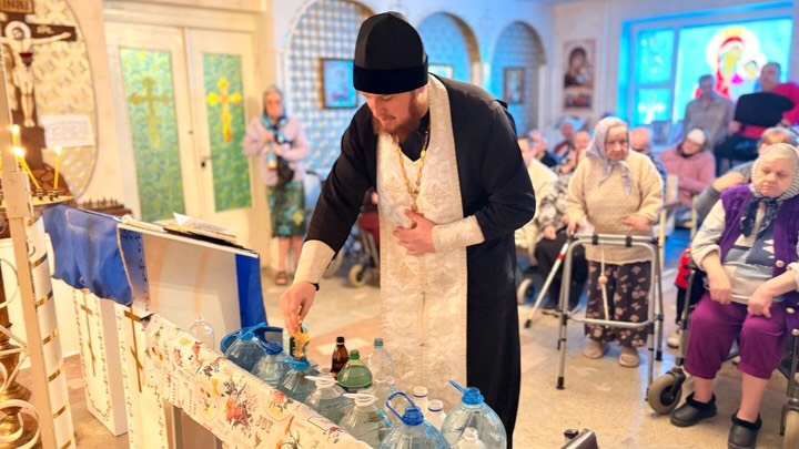 Обряд прошёл в тёплой и молитвенной атмосфере. Освящённая вода стала символом духовного очищения, укрепления веры и надежды для проживающих и сотрудников пансионата. Все желающие смогли принять участие в молитве и набрать крещенскую воду.