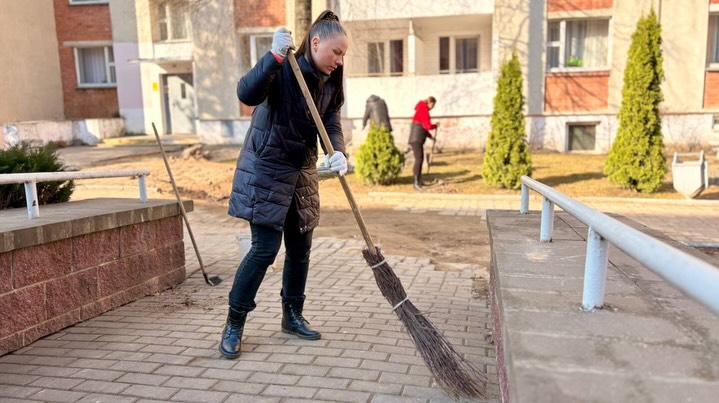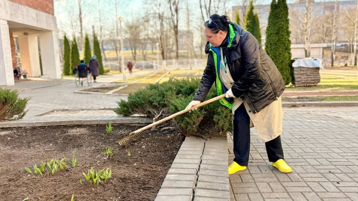«🇧🇾🇧🇾🇧🇾 Республиканский субботник: общий труд — на благо Родины! 🔹🔹🔹 Коллектив Витебского социального пансионата “На Двине” принял участие в Республиканском субботнике — 2026 🌱🧹🪣 Вооружившись необходимым инвентарем и хорошим настроением, приводили в порядок территорию и помещения пансионата после зимнего периода ☀️ #Республиканский_субботник-2026»